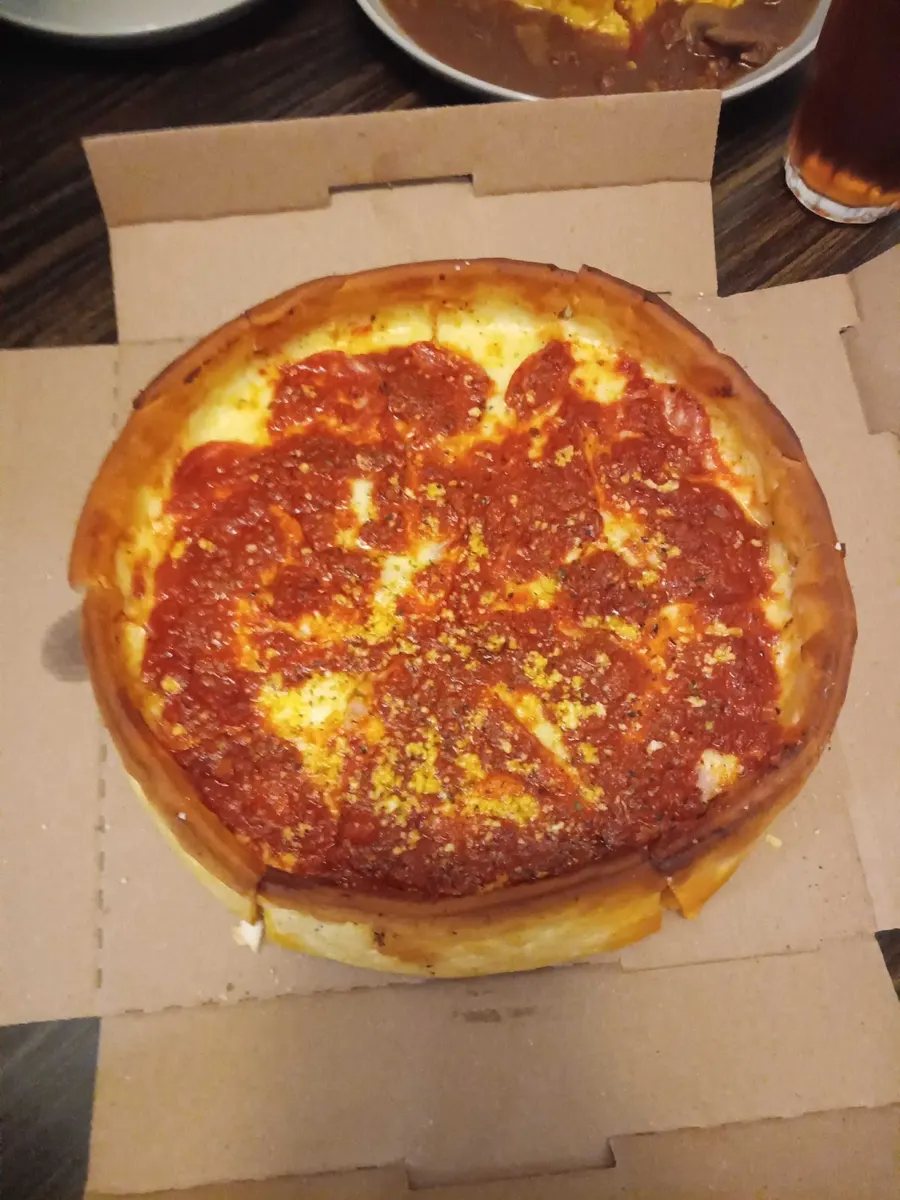 最後に、弊社社員がシカゴで食べたシカゴピザの写真を載せます!