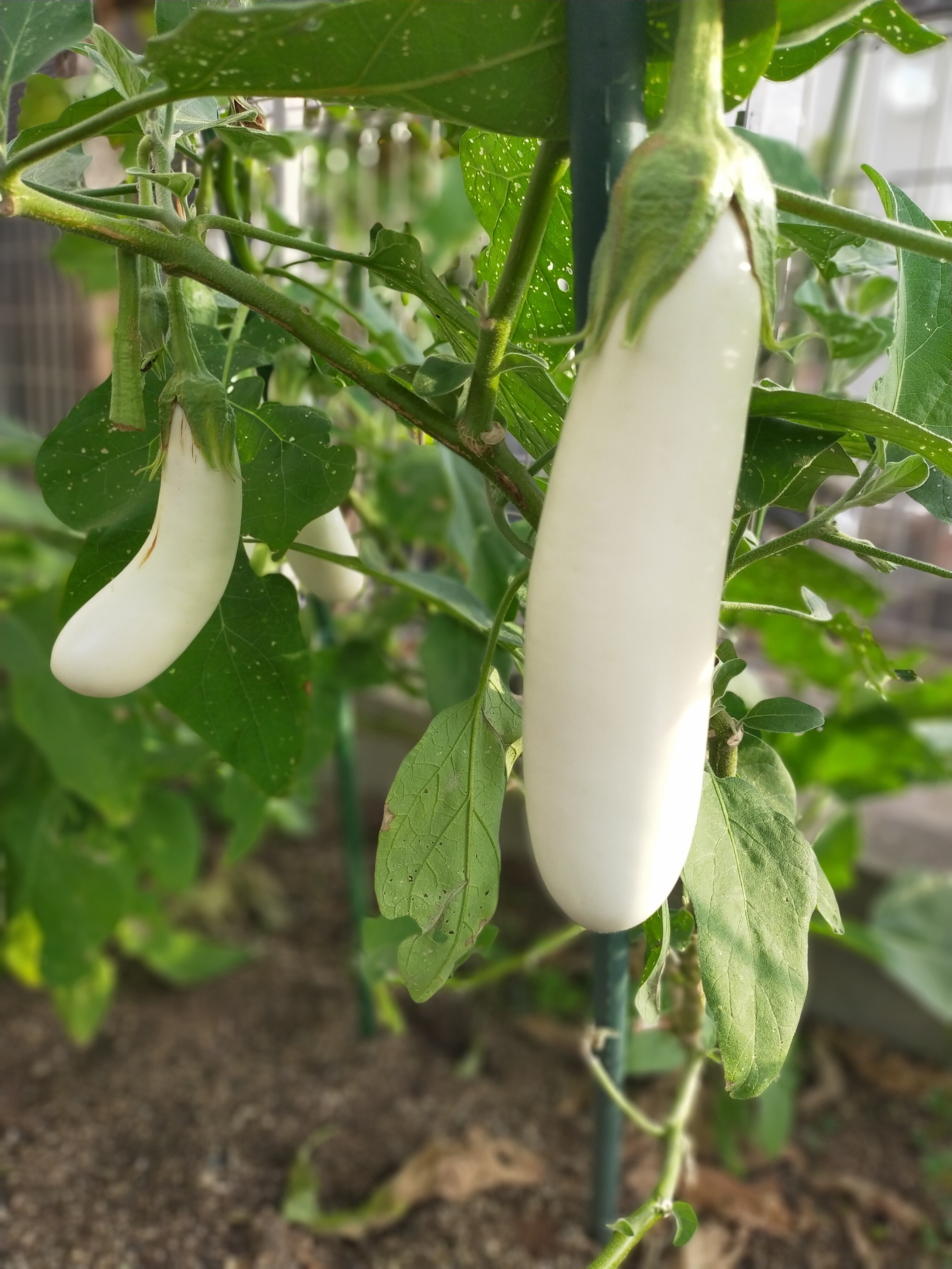 白ナス珍しいですが、形も見た目も美味しそうですねー来年挑戦してみたいです。