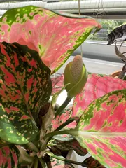 花芽がついた 会社の窓辺にあるアグラオネマ 9月に入って花芽がつきました! 水芭蕉風ですね。 このあとカットしました。