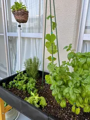 ベランダ菜園 相変わらずミニトマトの実付きはあまりですが、ハーブたちもミニトマトもすくすく成長中です🍅土には体力BASEを使用しています🌿🌈