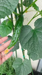 きゅうり約1ヶ月の成長の様子 立派なきゅうりになってきた〜!受粉とかさせなあかんと思ってたのに、そんな手間もなくどんどん大きくなっていってくれてる😂🌟6歳の息子も「きゅうり買わんでいいやん!」と楽しそうに観察してくれています🔎笑 サニーレタスもそろそろ1回食べていいくらいかな🥹